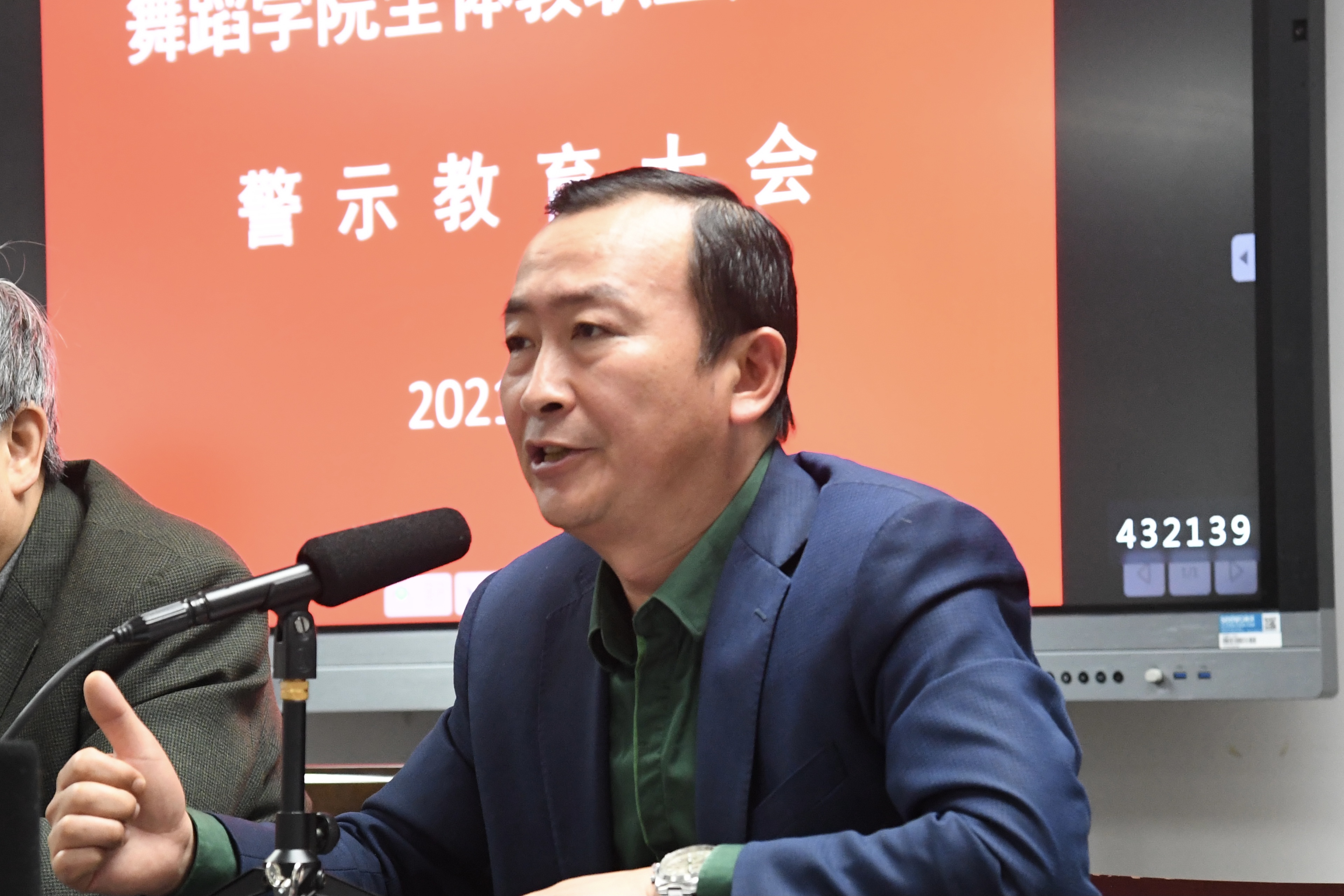 最后,舞蹈学院名誉院长于平就警示教育相关内容向各位老师提出了要求和寄语。于院长提出,要切实履行招生主体责任,对照上级教育主管部门和学校招生考试有关规定,进一步完善制度机制,切实加强对考务人员的监督制约。同时,对即将开展的招生考试,于院长也提出了期望:预祝舞院招生工作能在平稳有序的环境中圆满开展!