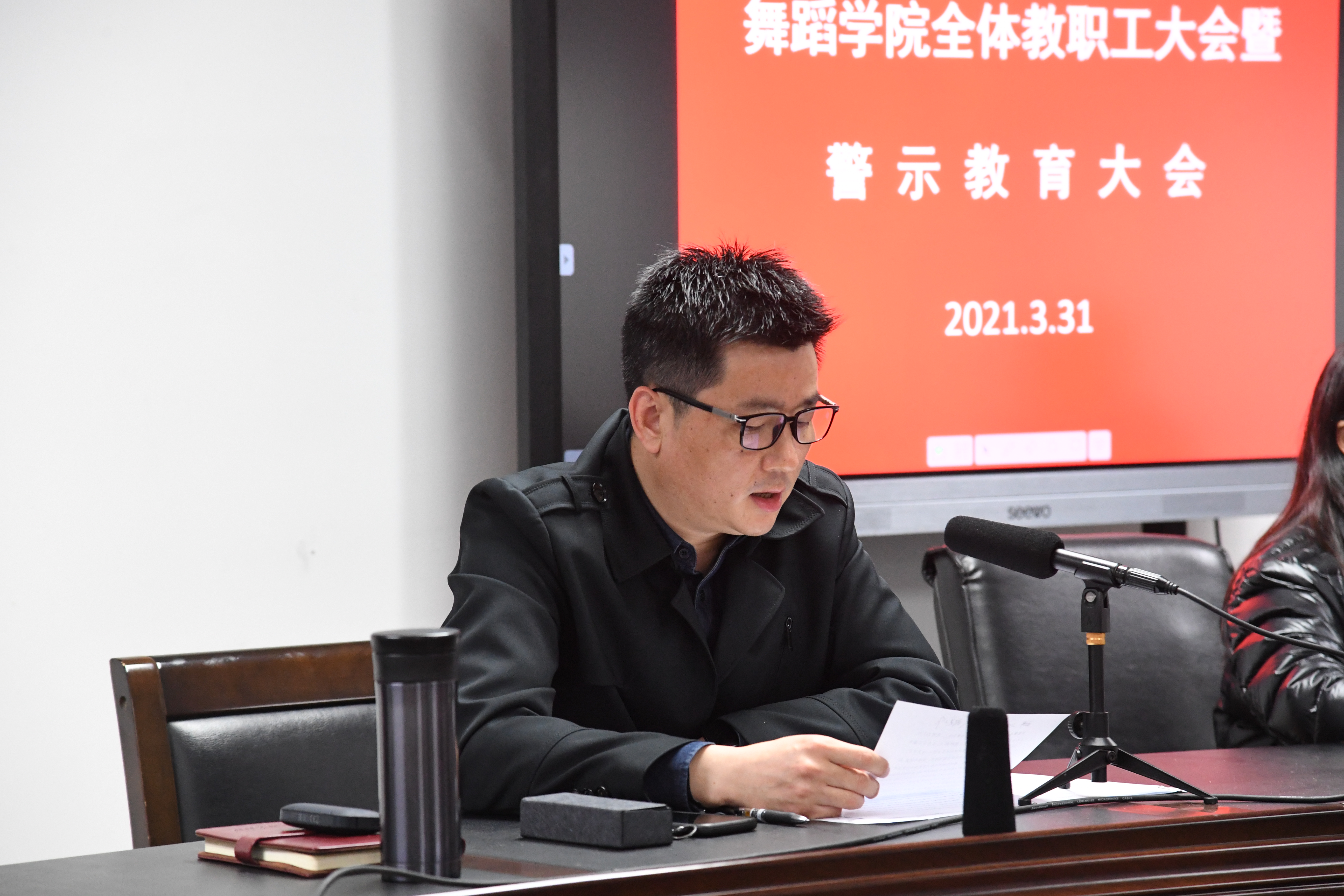 3月31日16:30,舞蹈学院全体教职工大会暨警示教育大会在325报告厅顺利召开。舞蹈学院领导班子成员及全体教职工参加了会议。