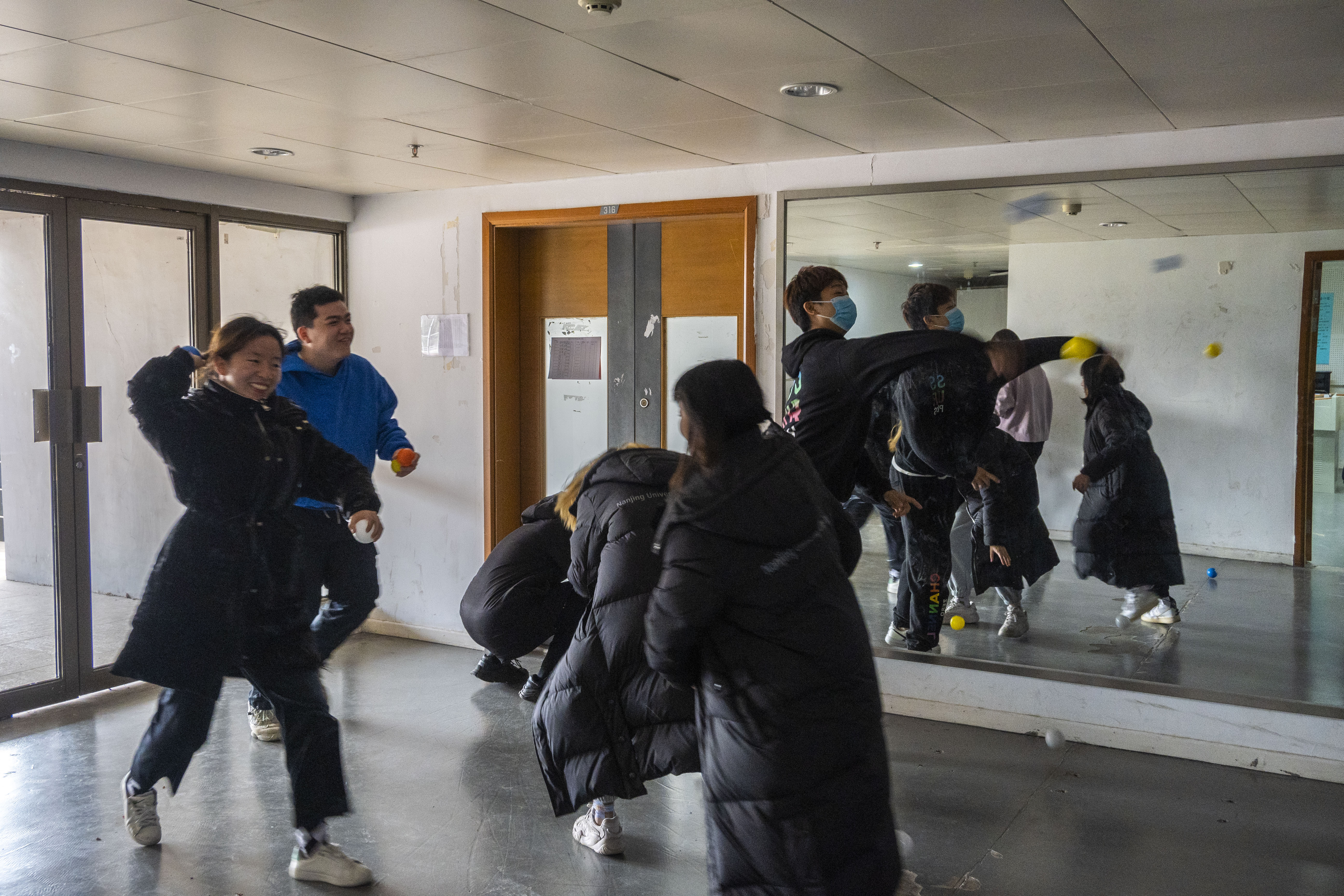 第四个小游戏是加油球球,通过各种方式将球想办法转移到另一队的领地,让同学们之间的气氛更加欢乐,增强同学们之间的合作精神。