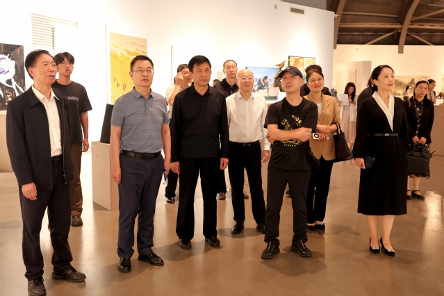 2025年9月30日是第十二个中国烈士纪念日,在中华人民共和国成立76周年与中国人民抗日战争暨世界反法西斯战争胜利80周年之际,南京艺术学院“山河魂•时代颂”美术、书法、设计、影像作品联展于当日下午在南艺美术馆报告厅开幕。中国新四军和华中抗日根据地研究会会长、江苏省军区原司令员于中海少将,研究会副秘书长兼文化宣传委员会主任、特约研究员肖力,研究会办公室主任王敏;江苏省红色文化研究会会长、原南京军区联勤部政委汪晓荣少将;江苏省教育厅二级巡视员张鲤鲤、体卫艺处二级调研员王红蕾;南京市鼓楼区宁海街道工委书记周新萍;南艺校领导俞锋、张凌浩、李向民、张捷、王慧、苗雨、吕少卿、邓硕,全体中层正职、教工党支部书记,以及师生代表共同出席开幕式。