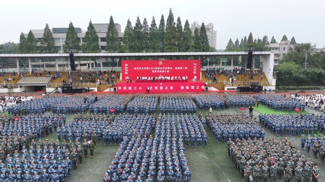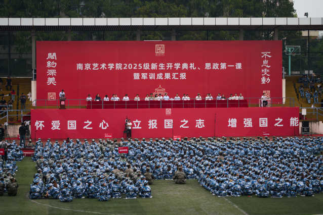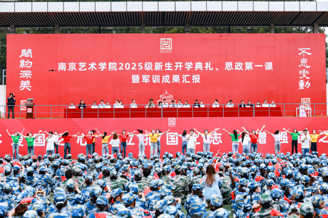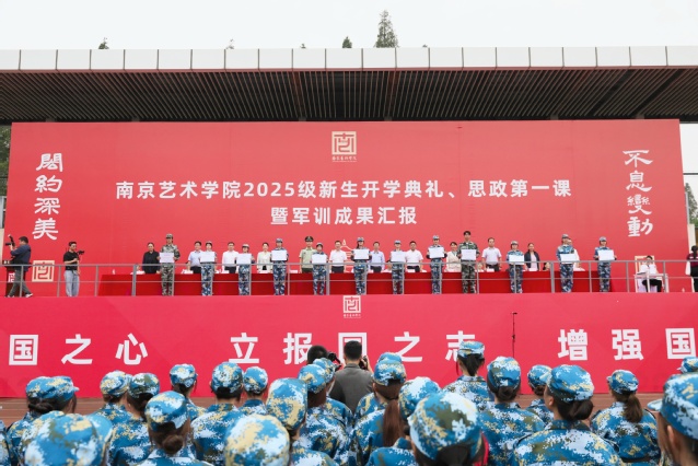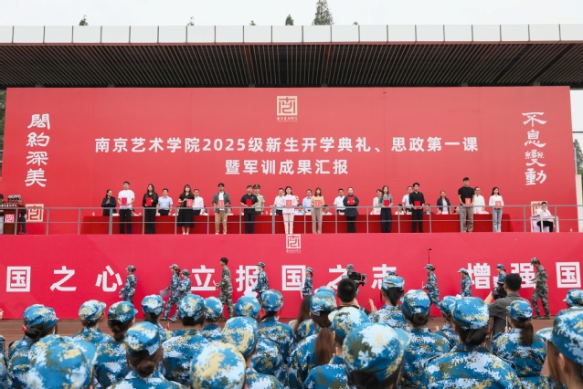 秋光为序,共启新程。9月29日下午,南京艺术学院2025级新生开学典礼、思政第一课暨军训成果汇报在校体育场举行。全体在校校领导,武警南京支队领导,机关职能部门负责人,二级学院党政负责人、副书记,新生辅导员,承训教官,2025级本硕博全体新生参加典礼。