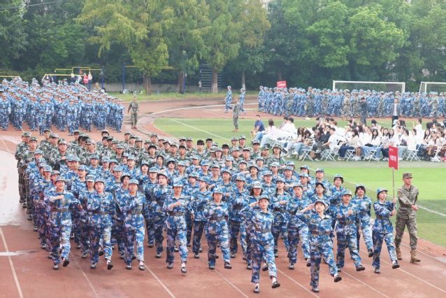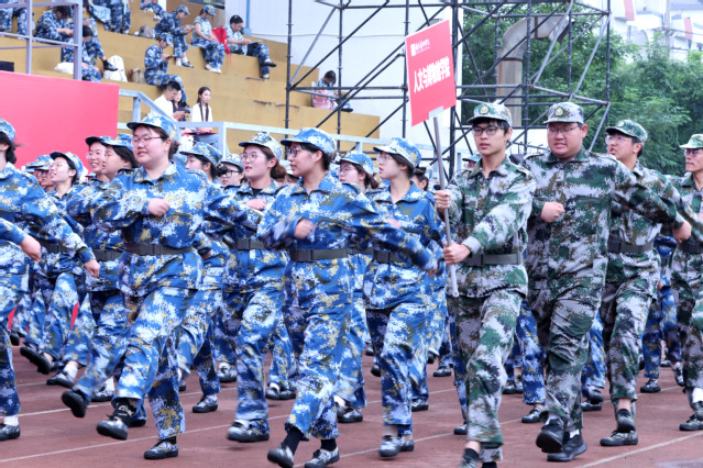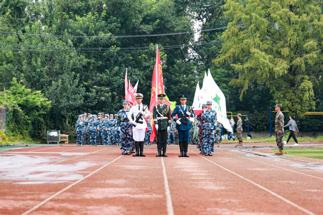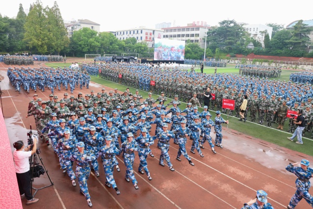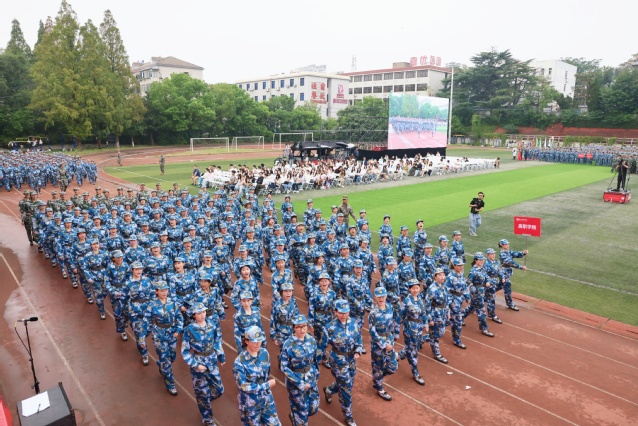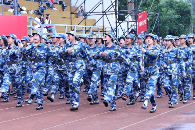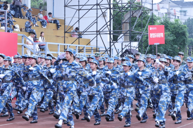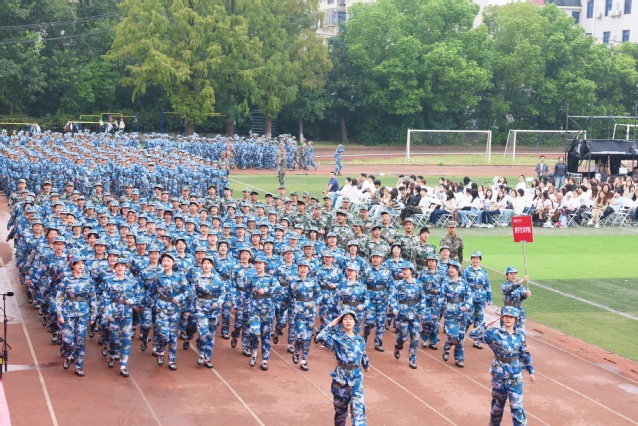 在庄严的校旗与院旗的引领下,2025级本科生军训团的分列式方阵,以饱满的精神状态、整齐划一的步伐与铿锵豪迈的气势,逐一走过主席台接受检阅。他们目光如炬,身姿挺拔,每一步都踏出了青春的节奏,每一声口号都喊出了昂扬的斗志,充分展现了当代大学生的飒爽军姿与蓬勃朝气。