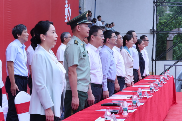 伴随着庄严的《义勇军进行曲》,五星红旗冉冉升起,全体在场人员肃立行注目礼,开学典礼、思政第一课暨军训成果汇报正式拉开帷幕。