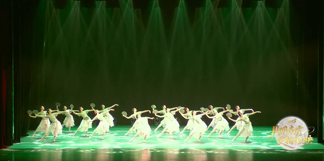 舞蹈学院原创芭蕾舞《漪漪水色》为晚会带来了流光溢彩的视觉盛宴。作品由王佳维、于嘉奇、易琦丽共同编导,舞蹈学院院长、欧美同学会副会长许薇指导,2022级、2023级舞蹈表演专业学生共同参与演出。舞蹈以“江南采莲少女”为原型,融合芭蕾结构语言、中国古典舞韵律与江南民间舞风格,描绘少女们在荷塘中劳作、嬉戏、闲憩的生活图景。作品通过芭蕾语汇的“中国化”探索,构建芭蕾舞在中国文化语境中的艺术表达,向海内外同胞传递东方深美意趣与真挚祝福。