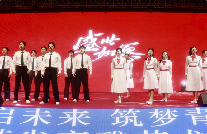 最后,全场师生齐声合唱歌曲《我爱你中国》。激昂的旋律使得真挚演绎与现场师生的热情回应交织成青春与时代的深情共鸣!