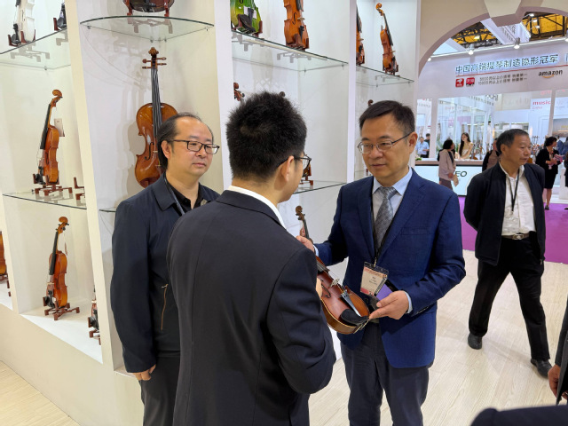 今年是继去年之后我校第二次参加中国国际乐器展。“南艺-黄桥”产学研创新乐器充分展示了我校的科研创新能力。未来,我校将与中国乐器协会、黄桥镇政府进一步深化“产、学、研、用”合作,充分发挥高校、协会与地方政府三方优势,紧密聚焦专业前沿和行业动向,不断深化在无弦小提琴、无弓小提琴等数字乐器开发、新材料和新技术研究应用、高端乐器设计制造等领域的理论研究和实践创新,共同为乐器领域的学科建设和产业发展贡献力量。