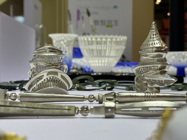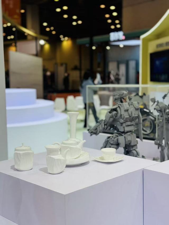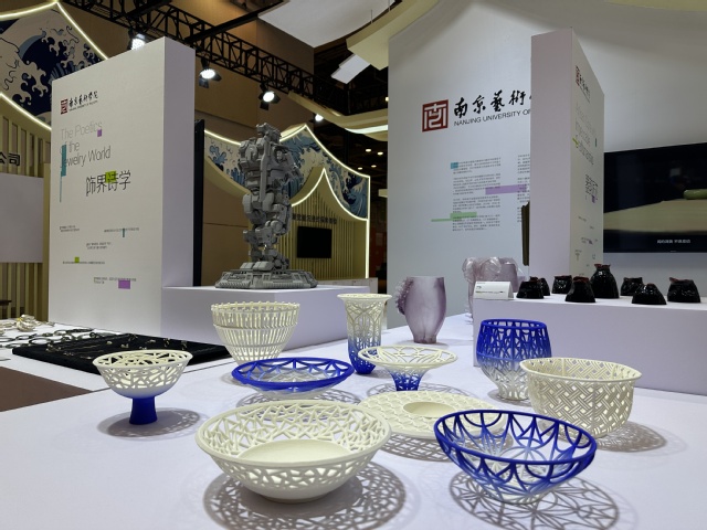 展区围绕“器韵匠芯”“饰界诗学”“数智共生”“形意智造”四大板块,系统展示了智能工业设计、数字媒体艺术、传统工艺焕新等多个方向的师生作品,全面体现学校跨学科、前沿性的艺术探索与创新能力。