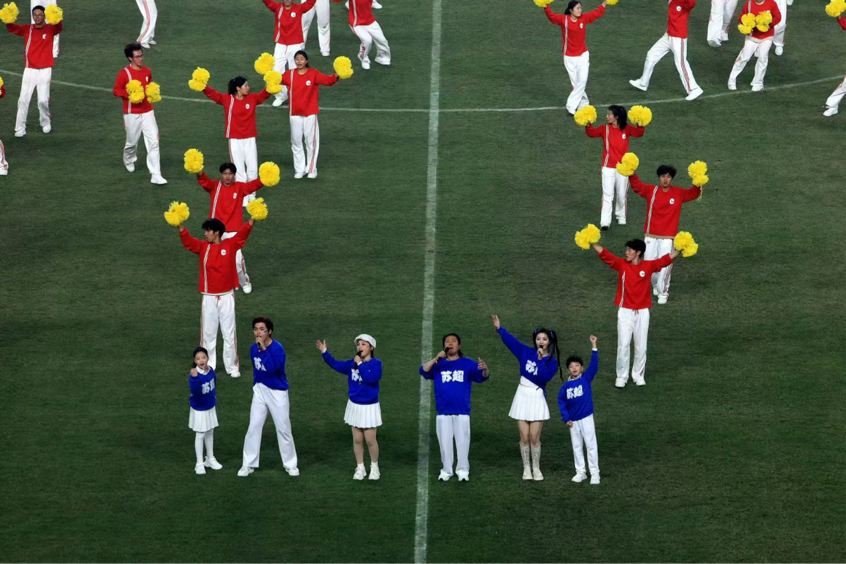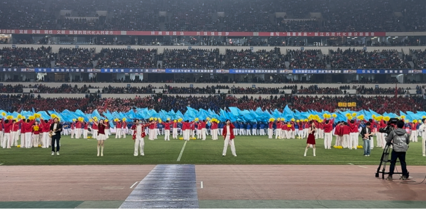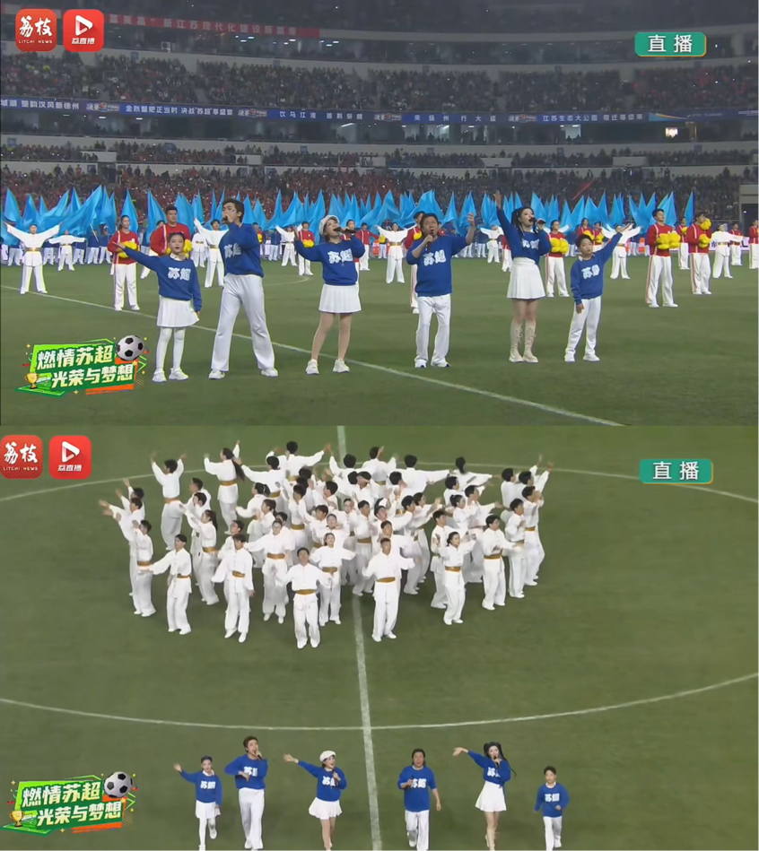 此次开幕式中的原创歌曲《闪耀的星》由省演艺集团的两位南艺校友——18级流行演唱专业赵雨阳、19级流行演唱专业研究生温露、23级流行演唱专业赵启见及24级流行演唱专业王晨曦共同演绎。200名啦啦操演员织就星河,每束光都承载着球员的汗水、传递着球迷的热忱。