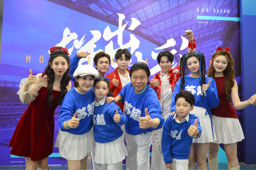 在决赛的开幕式现场,学院副院长张丹丹教授与著名作曲家卞留念先生以及江苏省演艺集团的两位南艺校友——17级流行演唱专业斯啸尘、16级流行演唱专业赵安妮,共同演绎了苏超联赛原创曲《苏超战歌》,这是属于现场六万球迷的战歌,每一句歌词都表达着对球员的鼓励以及对巅峰对决的期待。