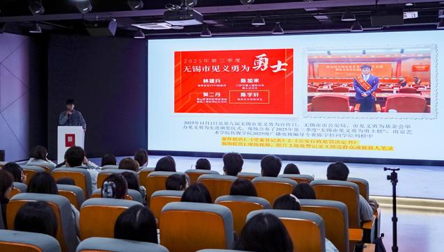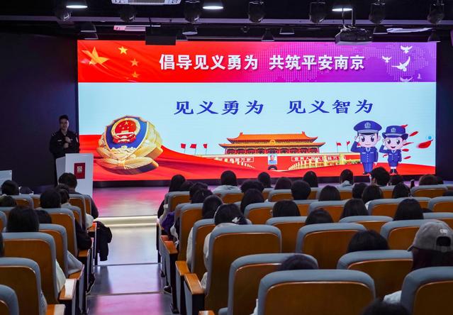 11月10日,传媒学院举办了“见义勇为”专题宣讲活动。南京市公安局鼓楼分局宁海路派出所民警张禹来担任主讲,2025级广播电视编导专业学生陈宇轩受邀发言。