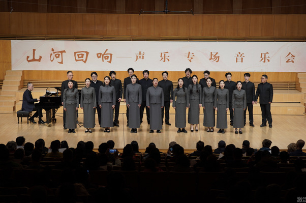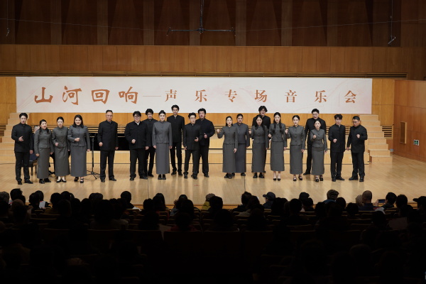 12月23日晚,南京艺术学院音乐学院《山河回响》声乐专场音乐会在音乐厅成功举办。整场音乐会以“长夜·江河泣”“烽烟·大地燃”“曙光·天地新”“征程·风帆满”四个篇章,带领现场观众穿越80余年的时光隧道,在歌声中回望中华民族浴血抗争、共御外侮的艰苦岁月,讴歌中国人民在党的领导下从胜利走向胜利的壮阔历程。