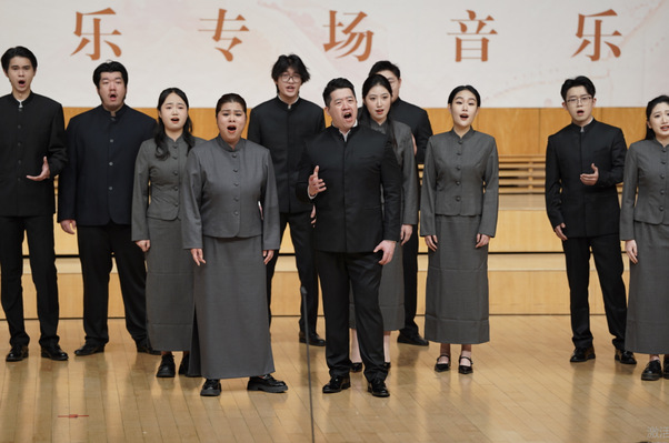 第二篇章“烽烟·大地燃”,氛围瞬间从沉郁转向炽烈。《太行山上》的合唱气势磅礴,“千山万壑,铜壁铁墙”的歌词伴着雄浑的乐章,再现了战士们用血肉之躯筑起钢铁长城的壮烈场景,指挥与合唱团的配合丝丝入扣,将战斗的激情传递给每一位观众。《到敌人后方去》的嘹亮歌声点燃全场斗志,合唱的铿锵节奏,勾勒出游击队深入敌后、灵活抗敌的鲜活画面;冀中平原英雄儿女的智慧与勇气在《地道战》的旋律中绽放,连接《毛主席的话儿记心上》的深情演绎,彰显出军民同心的强大合力。柔婉的《九九艳阳天》为铁血硝烟添了一抹温情,战士与姑娘“等胜利再相见”的约定,是对最终夺取胜利的坚定信念;《游击队歌》的轻快旋律与《八路军拉大栓》的朴实演绎形成呼应,展现出中华儿女在绝境中的乐观与坚韧。当《九儿》的歌声穿透声场,高粱地里的血性绝唱与《大刀进行曲》的激昂呐喊交织,将全民抗战的壮阔图景推向高潮,现场掌声雷动,久久不息。