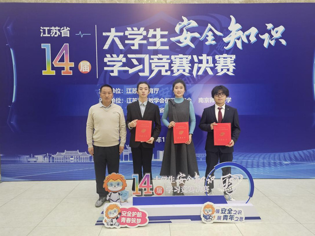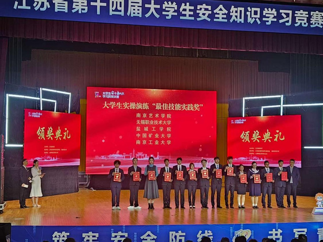 12月28日,由江苏省教育厅主办、江苏省高等教育学会保卫研究会承办的江苏省第十四届大学生安全知识学习竞赛决赛在南京师范大学仙林校区落下帷幕。我校人文与博物馆学院贾善敏、传媒学院胡睿杰、舞蹈学院邓犀锐三位同学组成的参赛代表队,由学校保卫处进行指导,在安全技能实操比赛中脱颖而出,成功斩获“最佳技能实践奖”。全省仅有10所院校获此殊荣。