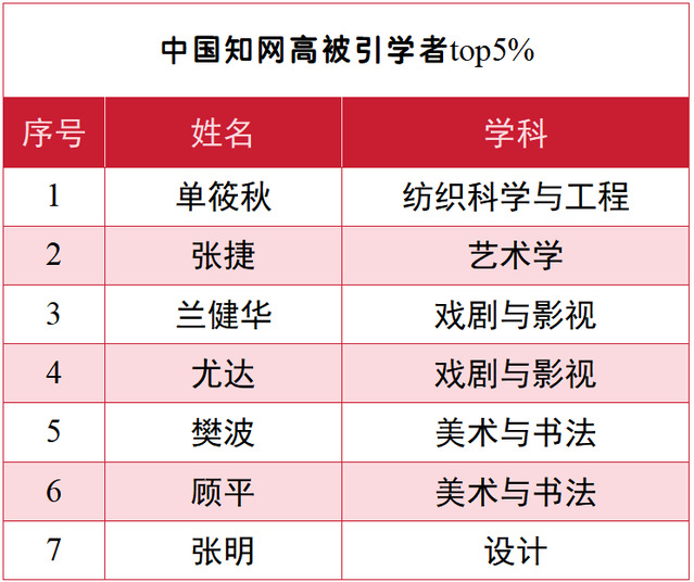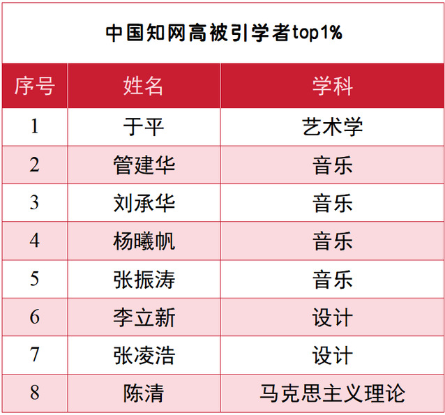 近日,中国知网中国科学文献计量评价研究中心正式发布“2025中国知网高被引学者”名单(2015-2024年),我校共有 15 位学者成功入选。在艺术领域,我校入选学者总数于全国高校中名列前茅,在综合性艺术院校中位居榜首。