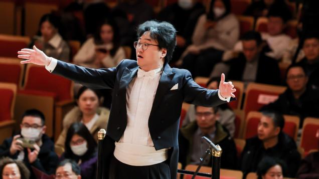 音乐会还演奏了多首中国经典曲目。郑路、马洪业的《北京喜讯到边寨》,以欢快的旋律和跳跃的节奏,展现了北京喜讯传至边疆时人们喜悦与欢腾的画面。徐振民的《雪里梅园》,旋律优美典雅,一幅雪中梅园的画卷徐徐展开,让听众感受到冬日里的坚韧与美丽。在音乐会的返场环节,黄贻钧的《花好月圆》以其欢快的节奏和喜庆的氛围,让观众沉浸在团圆的喜悦之中。约翰·施特劳斯的《拉德斯基进行曲》则以其雄壮有力的旋律和强烈的节奏感,将现场气氛推向了高潮。
