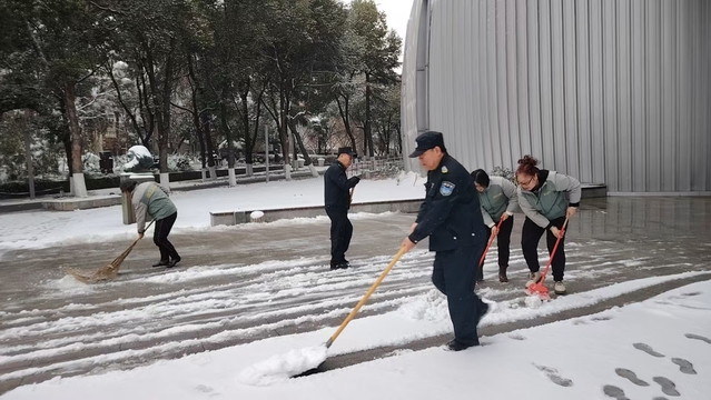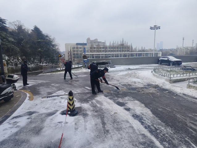 昨夜,一场瑞雪翩然而至。保卫处启动应急预案,保安队员实行区域责任制与动态巡逻清雪相结合的模式,用责任与温暖保障校园通行安全。后勤保障处第一时间联动后勤公司生活中心、物业等多方力量,高效开展扫雪除冰工作。
