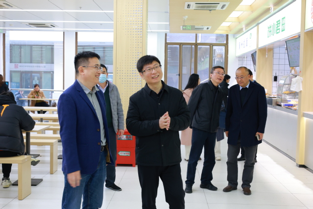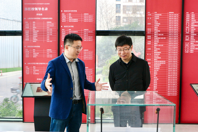 张纲一行先后参观了美术馆、校史馆和闳约餐厅。领导们在美术馆的“漆润新语—当代漆艺术数智美育展”中,感受全国优秀青年漆艺家与前沿科技团队通过人工智能、虚拟现实等技术呈现的非遗之美,在校史馆深入了解南艺为地方和国家经济社会文化发展作出的积极贡献,在闳约餐厅调研民族风味美食窗口。
