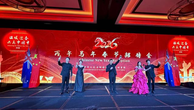 2月11日,中国驻悉尼总领事馆举办“温暖迎春·共庆中国年——2026马年春节招待会”。澳大利亚政界、侨界、高校、文化、媒体等各界代表,华侨华...