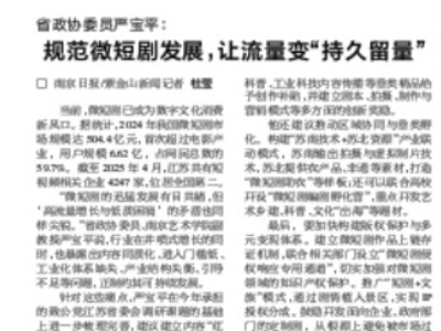 【南京日报】省政协委员严宝平: 规范微短剧发展,让流量变“持久留量”